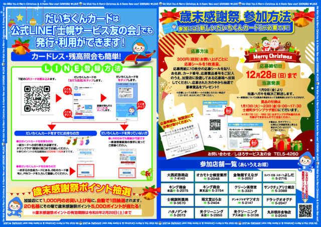 士幌本町商店街(協)サービス友の会 TEL 01564‐5‐4260